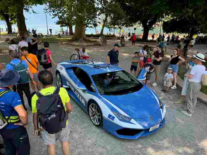 Lamborghini ha donato alla polizia stradale (oltre a questa, un’altra Huracan e, più di recente, una Urus) e che vengono utilizzate per il trasporto di organi. Ma lì accanto, in piazza Battisti, c’era anche il Pullman azzurro, sorta di sala multimediale itinerante dove un team di cinque agenti della Stradale appositamente formato impartisce lezioni di sicurezza stradale a base di giochi a tema, filmati e cartoni animati. Inoltre, a bordo c’è il simulatore di guida Sida, dove il pubblico può sperimentare i pericoli della strada, con particolare riferimento al grado di pericolosità della propria guida e alle distorsioni percettive causate dall’assunzione di alcolici e stupefacenti. All’esterno, un percorso pedonale per il primo avvicinamento alle regole della strada per i più piccoli.