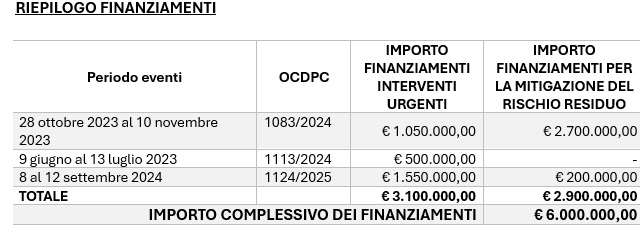 6 milioni di euro per interventi urgenti e opere di mitigazione del rischio residuo. Le risorse hanno consentito di intervenire tempestivamente per ripristinare la viabilità nei tratti più compromessi e di avviare opere strutturali finalizzate alla stabilizzazione dei versanti e alla prevenzione di nuovi dissesti.