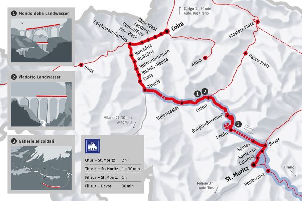 Il futuro - La Ferrovia Retica prosegue nel rinnovamento della propria rete e nello sviluppo di nuovi prodotti, continuando a rafforzare il proprio ruolo centrale per la mobilità, il turismo e l’economia dei Grigioni. Oltre il Bernina: alla scoperta della tratta dell’Albula, anch’essa Patrimonio Mondiale Unesco. La linea ferroviaria dell’Albula, naturale prosecuzione del percorso Bernina da St.Moritz a Coira, offre un viaggio spettacolare attraverso paesaggi alpini e capolavori d’ingegneria. Con treni a cadenza oraria e ampia disponibilità di posti, rappresenta una valida alternativa per viaggiatori individuali e gruppi.