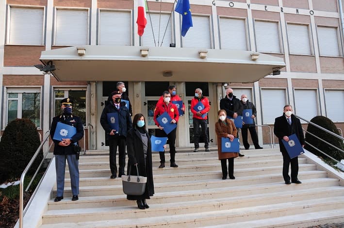Trento - Oggi il Commissario del Governo, prefetto Sandro Lombardi, ha consegnato i diplomi relativi alle Onorificenze dell’Ordine "Al Merito della Repubblica Italiana". Nel corso di una breve cerimonia che si è svolta presso il Palazzo del Governo, in forma estremamente ridotta, senza la presenza delle Autorità e del pubblico, in linea con le prescrizioni di contenimento per la diffusione del Covid-19, il prefetto Lombardi ha consegnato i diplomi relativi alle Onorificenze dell’Ordine "Al Merito della Repubblica Italiana" concesse con Decreto del Capo dello Stato il 27 dicembre 2019 a un Grand’Ufficiale, due Commendatori e nove Cavalieri.Secondo i fini indicati dalla Legge 178 del 3 marzo 1951, che lo ha istituito, l’Ordine al Merito della Repubblica - «O.M.R.I.», ricompensa i cittadini che si sono distinti per le benemerenze acquisite verso la Nazione nei campi delle scienze, delle arti, delle lettere, dell’economia, nel disimpegno di cariche pubbliche e di attività svolte a fini sociali, filantropici ed umanitari, nonché per lunghi e segnalati servizi nelle carriere civili e militari.Gli insignitiGRANDE UFFICIALE1 - DEBIASI GIORGIO (di Cles)Già Presidente provinciale della Protezione Civile dell’Associazione Nazionale Alpini, Sezione di Trento, ha partecipato a numerose operazioni di soccorso alle popolazioni colpite da calamità e disastri naturali in Italia e all’estero.COMMENDATORI2 - CANCLINI FELICE (di Moena)Ispettore Superiore della Polizia di Stato a riposo, ha svolto meritevole servizio presso il Centro Addestramento Alpino della Polizia di Stato di Moena.Per le sue capacità professionali e organizzative collabora nell’organizzazione di importanti eventi sportivi.3 - DELLANTONIO MAURIZIO (di Moena)Guida alpina attiva nel Soccorso Alpino da oltre quarant’anni, è il Presidente nazionale del CNSAS (Corpo Nazionale del Soccorso Alpino e Speleologico)CAVALIERI4 - BOLZA ROBERTO (di Pieve di Bono-Prezzo)Esperto alpinista, è stato Presidente del Soccorso alpino trentino e dal 2016 è Consigliere Nazionale del CNSAS (Corpo Nazionale del Soccorso Alpino e Speleologico)5 - BRIGHENTI GLORIA (di Rovereto)Infermiera strumentista, alpinista di alta quota, operatore di soccorso alpino e tecnico di soccorso alpino, è Vice direttore e Istruttore nazionale della Scuola Nazionale Medici Alpini6 - FERRARI FULGIDO (di Borgo Lares)Coadiutore di volo del Nucleo Elicotteri della Provincia autonoma di Trento, è stato Capo Sezione della Stazione di Soccorso Alpino di Tione di Trento.7 - FRISENNA FRANCESCO (di Trento)Sovrintendente Capo della Polizia di Stato in congedo, è impegnato nel volontariato sociale con l’Associazione Nazionale della Polizia di Stato, Sezione di Trento8 - MANCINO GABRIELE (di Rovereto)Assistente Capo della Polizia di Stato, ha collaborato con vari enti culturali e assistenziali e sostiene le attività di associazioni di volontariato sociale.9 - MISSERONI ROBERTO (di Rovereto) Guida alpina, Istruttore nazionale di soccorso alpino e operatore di elisoccorso di Trentino Emergenza della Provincia autonoma di Trento, è Direttore del C.N.S.A.S. (Corpo Nazionale del Soccorso Alpino e Speleologico)10 - PIVA FABIO (di Predaia)Luogotenente dell’Arma dei Carabinieri in quiescenza, è impegnato nel campo sociale con alcune Associazioni di volontariato locale.11 - SIMONE IOLE (di Levico Terme)Premiata nel 2004 con la Stella al Merito del Lavoro per le sue capacità professionali, impegnata nel volontariato, è la stimata Presidente dell’Associazione Nazionale Famiglie Caduti e Dispersi in Guerra.12 - STENICO SANDRO (di Trento)Vigile del Fuoco in pensione dopo quarant’anni di attività, è stato più volte decorato per meriti acquisiti sia sul campo della prevenzione incendi sia in attività operative.Ora presta la sua opera in iniziative di solidarietà e di diffusione della cultura della sicurezza antincendio.