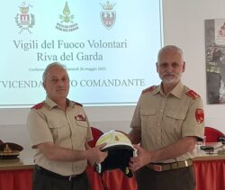 Riva del Garda (Trento) - Avvicendamento ai vertici del Corpo dei vigili del fuoco di Riva del Garda (Trento) e relazione del comandante uscente Graziano Boroni, 59 anni, vigile del fuoco dal 1983, in precedenza caposquadra per 9 anni, ispettore distrettuale per 9 anni, cassiere del corpo ed infine comandante per 10 anni. Ora resterà nel corpo col grado di vigile.