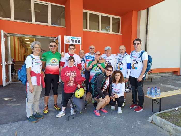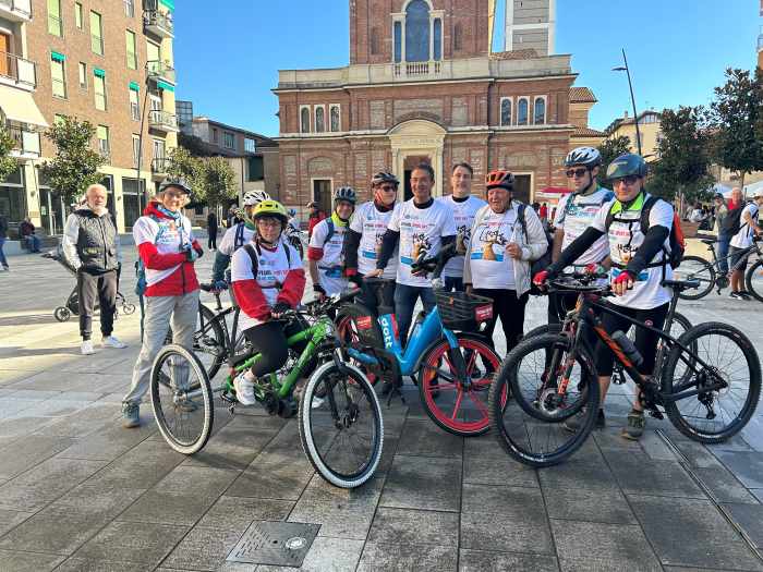 Giulio Mendini, con alcuni volontari e un gruppo di ciclisti speciali: l’ASD, nata nel 2002, è infatti attivamente impegnata nell’avvicinare persone con varie disabilità all’attività sportiva, il ciclismo nello specifico, facendo emergere risorse che poi si possono affermare in altri campi.