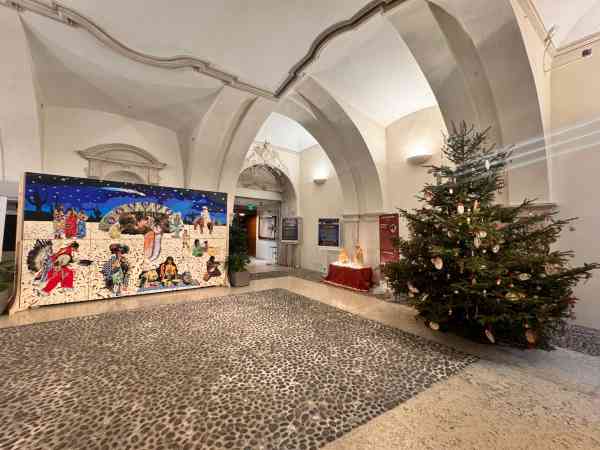 presidente del Consiglio provinciale Claudio Soini ha accolto i visitatori presentando l’opera del maestro Luigi Ballarin, che immagina il presepe come Padre Kino avrebbe potuto raccontarlo ai popoli nativi del Messico e dell’Arizona: una capanna nel deserto, i costumi locali, gli animali simbolici e i capi tribali al posto dei Magi. Un racconto semplice e potente, capace di unire culture lontane. Soini ha ricordato l’importanza di valorizzare, negli spazi di Palazzo Trentini, il territorio trentino e il lascito culturale di padre Kino, figura di ingegno e dialogo.
