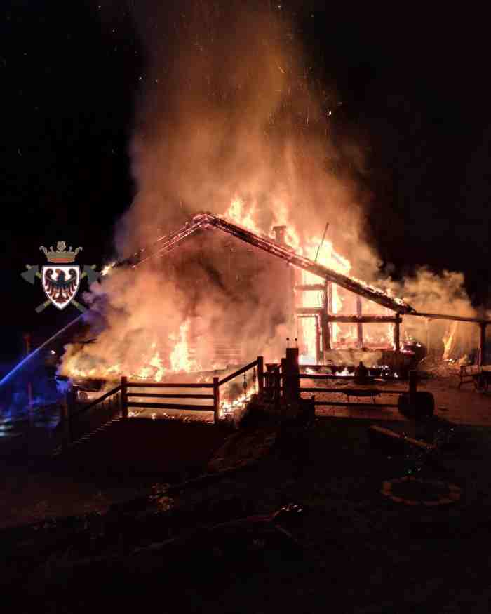 Tesero. All’arrivo dei vigili del fuoco volontari la struttura si presentava avvolta dalle fiamme e grazie al loro lavoro è stato possibile salvare il piano interrato del maso, nel quale si trovava anche un’auto, mentre i due piani di abitazione hanno subìto danni ingenti. A coordinare le operazioni il comandante del corpo di Predazzo,