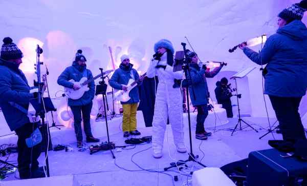 struttura è pensata per sciogliersi naturalmente con l’arrivo della primavera, senza lasciare alcuna traccia, ed è progettata per favorire la dispersione del calore prodotto dal pubblico verso l’alto e all’esterno: anche a piena capienza, la temperatura interna resta intorno ai -3 gradi. All’interno, la musica si intreccia a giochi di luce ed effetti speciali, dando vita a concerti che sono anche esperienze visive.