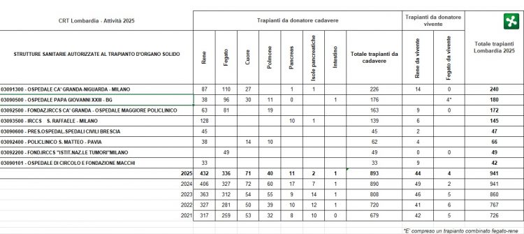 Grazie a questo incremento, i trapianti da donatore deceduto sono cresciuti da 679 nel 2021 a 893 nel 2025. Raddoppiate anche le donazioni multitessuto, passate da 25 a oltre 50 nello stesso periodo. Particolarmente rilevante il dato sulle cornee: con oltre 4.000 donazioni nel 2025, la Lombardia copre il 35% dell’attività nazionale, riuscendo a soddisfare interamente il fabbisogno regionale e supportare anche altre realtà italiane ed estere.