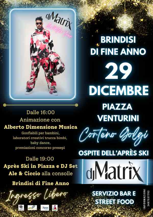 Dalle 18:30: la piazza si accende per l'Après Ski con il DJ set di Ale & Ciccio e la partecipazione straordinaria della Guest Star DJ Matrix. Saranno presenti servizio bar e street food per tutta la serata. Ingresso Libero.