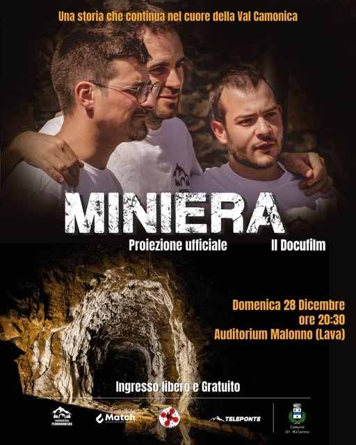 Il docufilm "Miniera", che verrà proiettato domenica sera nell'auditorium di Lava (ingresso libero e gratuito), è un viaggio nel cuore del paese della Valle Camonica. Saranno racccontate le origini della Miniera Ferrominers: un'opportunità per giovani e meno giovani di conoscere un pezzo importante della storia di Malonno.