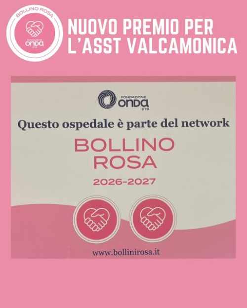 L'ospedale di Esine, acquisisce un valore distintivo e differenziante nel panorama sanitario nazionale, al pari dei 370 ospedali premiati e fa parte di una rete virtuosa istituzionalmente riconosciuta, contraddistinta per l’impegno e l’attenzione alle esigenze di salute femminile e il supporto offerto alle donne nell’identificazione consapevole del luogo di cura più appropriato.