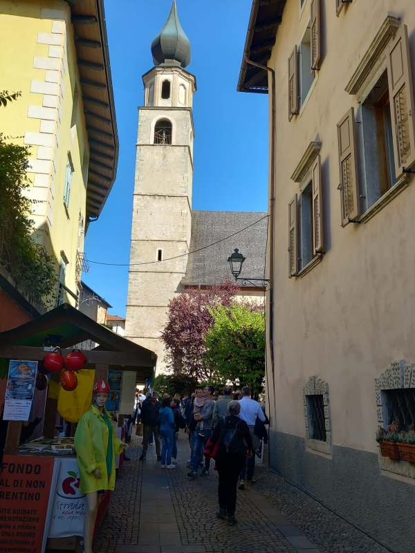 Gli stand allestiti nel borgo Denno presentano le diverse produzioni di mele e i nuovi prodotti che sono stati immessi sul mercato. Denno è un borgo meraviglioso con le sue radici antiche e una particolare collocazione che, per altitudine e fattori climatici, rappresenta il luogo ideale per coltivare le mele.