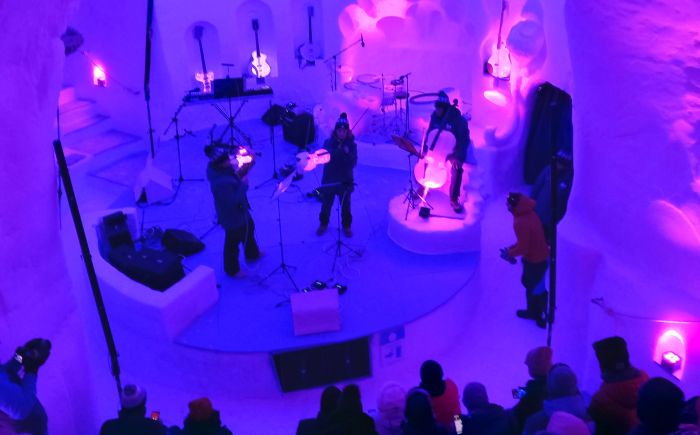 Un'esperienza emozionante assistere a uno spettacolo con musicisti che suonano strumenti nati da acqua e neve. Lo scorso anno 8mila persone hanno assistito agli spettacoli proposti al Paradice Dome.